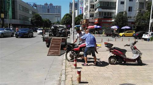 7月22日,长洲交警大队接到群众举报称在辖区华洋花园小区周边道路和新兴二路梧州日报社正门外的人行横道上有数辆无主摩托车长期停放,疑似“僵尸车”,希望长洲交警大队能尽快进行相应处理。接到举报后,长洲交警大队执勤民警、协警一行8人立即赶往现场查看、处理。