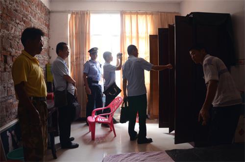 7月27日上午8时,在执行局局长潘锦波的带领下,执行队伍驱车奔赴石桥镇。到达现场后,随行法警即刻拉起警戒线封锁现场。上午10时,执行法官下达执行命令,强制开锁进入搬迁的房间,全景摄像完毕后,执行法官下达强制搬迁命令。根据执行计划安排,执行现场外围由四名法警维持秩序,现场内部由三组共六名执行人员登记物品,在执行法官的协调下,整个强制搬迁行动平稳有序进行。