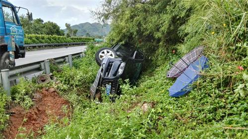 15时55分许在G65包茂高速2833公里处(往梧州方向)又发生一辆奥迪SUV越野车因操作不当而侧翻到路边的,造成车辆受损以及车上三人不同程度轻微受伤的交通事故!三四合署大队另一组民警火速赶到,参与施救及处置。目前伤者已转移至安全地方,吊车亦到达正在拖移车辆中。