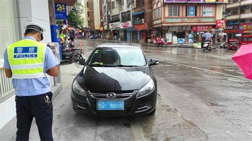 龙圩交警整治辖区机动车乱停乱放交通违法行为