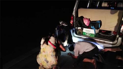 2016年8月8日晚11时,高速三四合署大队巡逻民警完成了白天的巡逻值班任务后,仍然心系辖区的安全畅通,便带着执勤协警开始了晚间巡逻的第一波次,当他们巡逻至广昆高速274公里处时,发现一辆小型面包车停在路边打着双闪灯,车上人员在路边不知所措。巡逻民警凭经验意识到这肯定又是车辆发生故障了,于是立即一边做好安全防护措施,一边上前询问情况,原来系车辆爆胎了,但车上人员不知道怎么更换。民警一听二话不说,马上拿出工具帮司机更换了备胎,总共耗时不超过二十分钟。司机感谢道:“想不到半夜没能解决的问题,能碰到你们帮忙解决,不然我们都不知道怎么办才好,真的是非常感谢。”