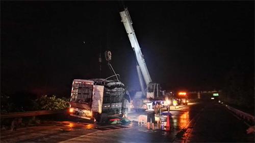 8月15日晚上10时许,在广昆高速公路276公里处(往广东方向),一辆运载130头生猪的货车因爆胎导致侧翻,车上三人均没有受伤,但车上部分生猪逃了出来,在高速路上乱窜,情况紧急,高速三四合署大队接警后火速出警,进过4个多小时的救援,这起事故得到妥善处置,整个过程中通过此路段车辆均能有序通行。