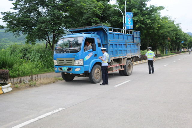 蒙山大队开展渣土运输车、沙石等建筑材料散装运料车、预拌混凝土运输车整治行动