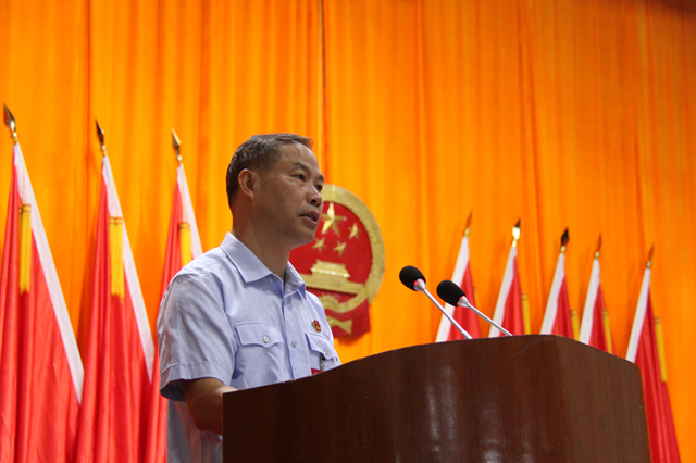8月30日上午,藤县第十六届人民代表大会第一次会议在藤州镇电影院隆重召开。藤县人民法院院长石忠贵向县人大代表、政协委员、列席人员汇报过去五年法院工作情况及今后五年的工作安排。