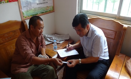 马泽森同志在贫困户信用贷款申请表上签字