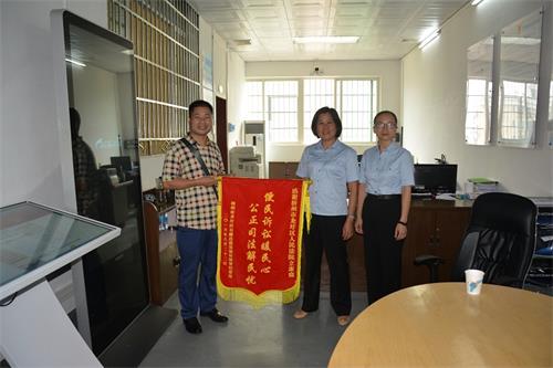 “自决定起诉对方那一刻起,我心里一直忐忑不安,都说打官司既费时又费力,而且结果不一定是如愿的。没想到法院从立案到执行每个环节的效率都那么高,特别是起诉立案和强制执行立案,立案法官当天就受理了我的申请,并认真耐心回答了我心中的疑惑,从而让我心里重燃希望!现在我多年的心头大石终于放下了,我要为你们‘点赞’!”8月31日,市民王先生将一面绣有“便民诉讼暖人心 公正司法解民忧”字样的锦旗送到梧州市龙圩区法院便民信息化诉讼服务站,表达对该院诉讼服务中心为民便民利民诉讼服务的感谢。