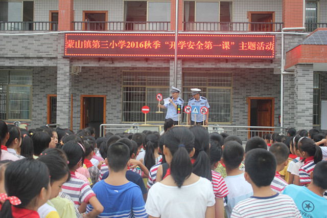 9月1日,是各中小学校新学期开学的首日,为切实做好中小学生交通安全教育工作,进一步增强广大中小学生交通安全意识,当日,蒙山县公安局交管大队深入辖区各中小学开展“开学第一课”交通安全宣传活动,给学生们上了一堂别开生面的交通安全教育课。