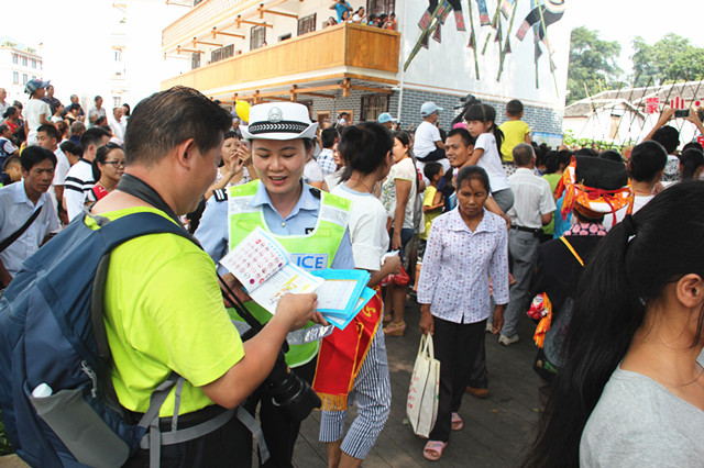 当日,大队宣传民警组织社会志愿者,带着精心准备好的宣传材料早早地来到放赦节活动现场,设立了交通安全宣传咨询点。随着舞狮子、民族风情演出、对山歌活动的开始,游客及行人逐渐增多,宣传民警和志愿者积极的向过往群众发放宣传材料,并以风趣的谈吐耐心的给群众讲解交通安全知识,并引用近期辖区内发生的典型事故案例警醒广大群众,耐心为群众讲解交通事故发生的原因,用血淋淋的交通事故教育倡导广大交通参与者要模范遵守交通安全法律法规,拒绝乘坐无牌无证、超员等交通违法车辆;同时还向过往群众发放交通安全手册,将宣传活动推向了高潮,在放赦节活动现场营造了良好的交通安全宣传学习氛围,使广大道路交通参与者的交通安全法制观念和文明交通意识得到了提高。