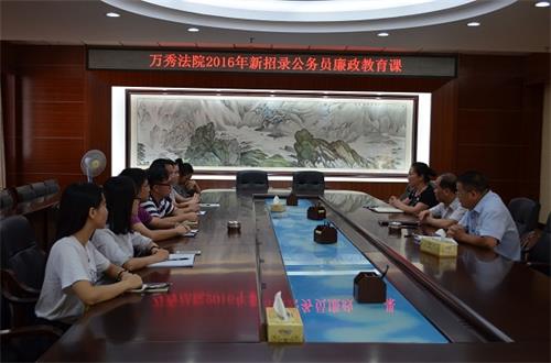 为强化新录用公务员的廉洁意识,进一步树立公正、廉洁执法的司法理念。9月6日,万秀区人民法院对2016年度新招录的7名公务员进行岗前集体廉政谈话。