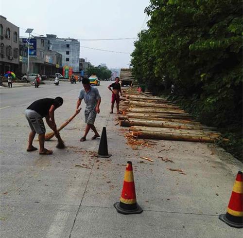 民警立即下车在木材散落后方摆放反光锥形筒,时值正午,天气闷热,正是容易疲劳犯困时段,如果不及时处置,极易造成交通事故。民警一边指挥后方车辆减速通行,一边让木材车司机立即联系车辆和人员,将散落的木材搬运至路边安全地方。期间,附近热心的群众一起帮忙搬运散落的木材,经过十多分钟的警民通力合作后,终于将所有木材清理到路边安全位置,为通行车辆打通行车通道,保障路面畅通有序。