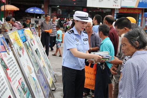 向群众发放宣传资料