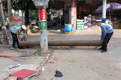 9月21日上午,岑溪大队的民警们在国道324线北环大道巡逻,当巡逻至北环新村路段时,发现路口处有石块和废铁散在地上,民警随即过去了解情况。“不知道谁把这些东西放在这不管的,之前就有人开摩托车出来在这里摔倒了”。民警询问附近的群众了解情况之后,立即动手将这些障碍物移到路边,将安全隐患彻底清除后,才又上路继续巡逻。
