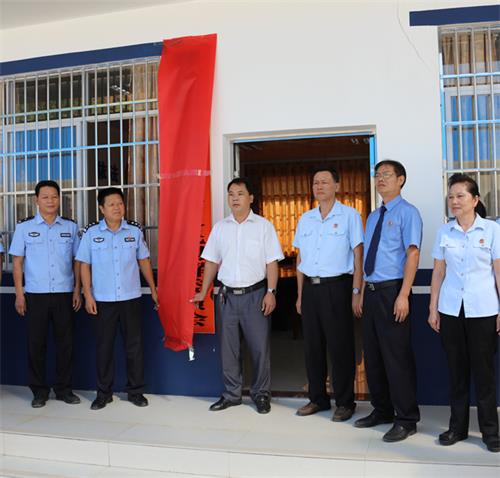 藤县政法委副书记唐培乾(左三)为巡回法庭揭牌