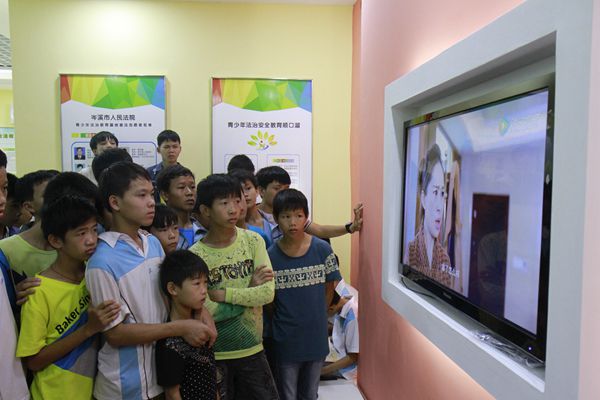 参观完科技法庭后,同学们来到法治教育展板区。法官姐姐通过以案说法的形式、通俗易懂的语言向同学们讲解了展板上的法律知识,让同学们听得津津有味。另一方面,微电影展播区循环播放的《法内情》等具有警示、教育意义的精彩法治微电影也吸引了同学们的关注,大家里三层外三层地将微电影展播区围得水泄不通。