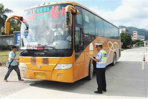 为保证客车的行车安全,杜绝发生群死群伤的严重交通事故,岑溪市公安局交通管理大队展开专项行动,加强对客运车辆的检查力度,加强对客运车辆交通违法行为的查处力度,确保群众的出行安全和道路运输安全。