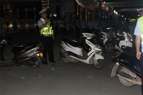 交警夜查非法改装摩托车助力车