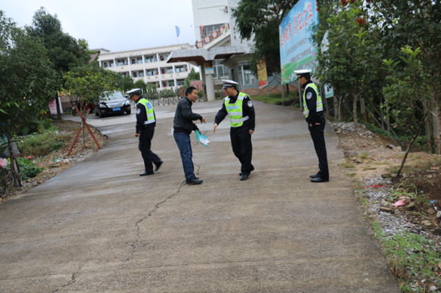 陆中队长亲自指导校方摆设交通安全设施和标志