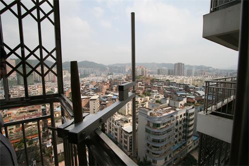 11月15日上午一上班,我们发现一直利用固定站进行跟踪监测的91.5MHz可疑调频广播信号仍在持续播放着“六合彩”诈骗信息内容,确定其为“黑广播”无疑。无管处立即派出技术人员利用移动监测车及便携式设备对该“黑广播”信号源进行查找定位,技术人员只用了20分钟就速度定位及找到了隐匿于新兴三路一高层住宅楼阳台的“黑广播”天线。