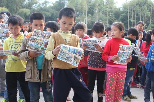 学生们在认真阅读宣传资料