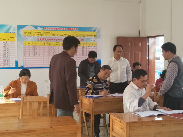 在东荣镇政府的会议室,石院长与县人大副主席陈淼东等人一起针对该次扶贫对象脱贫摘帽核查验收工作,集中镇领导干部、各扶贫村干部和帮扶责任人,召开验收工作培训会议。