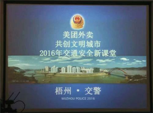 近年由于网上外卖订餐平台的兴起,街道上都经常会看到美团外卖送餐员的身影。为了避免美团外卖员工违规行车,确保送餐行车安全,12月9日上午,梧州市公安局交警支队对美团外卖的60名美团外卖员工进行了交通安全培训教育,学习交通安全知识、共建交通安全环境。