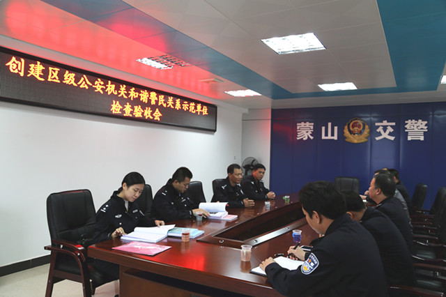 12月13日下午,以梧州市公安局政治部副主任覃朝良为组长的市局工作组到蒙山县公安局交通管理大队检查指导和谐警民关系示范单位创建工作。
