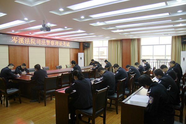 为落实2016年司法警察技能大训练工作计划,检查司法警察对司法警察理论知识的掌握情况,12月9日上午9点,岑溪市人民法院法警大队按照梧州中院法警支队要求,组织全体司法警察在诉讼服务中心二楼会议室进行基础理论考试。