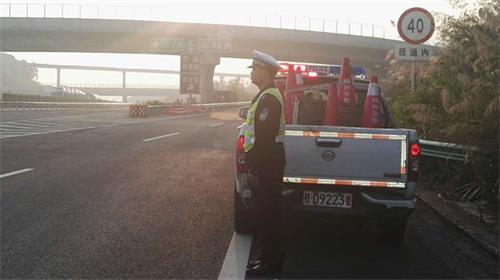 期间,早上6时许,高速三、四合署大队带班领导带领民警、辅警一行人赶往水汶高速站好第一岗,确保开通首日车辆有序通行,道路畅通。