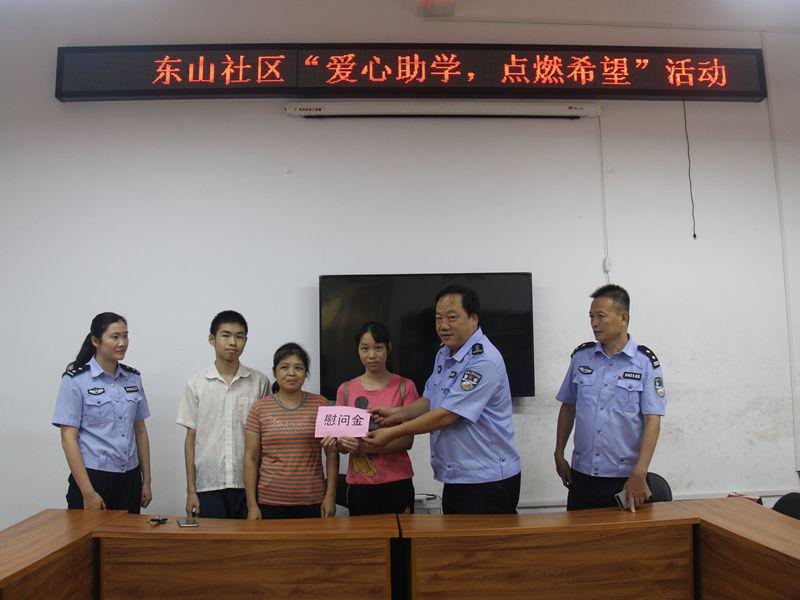 二、送温暖,夯实群众基础。一是爱心助圆学业梦。8月26日是开学季前夕,大队积极开展“爱心助学、点燃希望”行动,组织全体党员民警捐献善款,主动为公益事业做奉献,用实际行动为东山社区的一对贫困姐弟送关怀、送爱心,用爱心照亮其前进的道路。二是持续关注弱势群体。大队利用“一帮一联”帮扶活动等有效载体,强化服务群众的意识,到定点帮扶贫困村蒙山县陈塘镇陈塘村开展“一帮一联”帮扶活动,走访贫困户了解其家庭情况,为他们送去物质上的帮助和精神上的抚慰,让帮扶对象感受到了党和政府的关怀及大队心系群众的热情,让他们看到了早日脱贫致富的希望。
