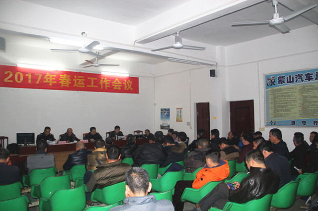 县交通局的领导在发言中强调,全县所有从事客运的车主、司乘人员要认清形势,提高认识,采取各项得力措施,切实做好2017年春运工作;安监局的领导在会上指出,2017年的春运与往年有所不同,随着经济形势的好转,物流客流量较去年有望稳中有升,有利因素很多,希望客运企业从维护安全稳定高度出发,充分做好运力筹划,狠抓企业安全生产各项措施落实,确保我县2017年春运交通安全;金晖蒙山分公司负责人在讲话中再三要求公司的管理人员,要严格执行公司的各项管理制度,认真落实每趟报班检验制度、“三不进站、六不出站”制度,从源头上做好各项安全防范工作。同时强调,今年的春运管理工作要加大对违法行为的处理力度,大幅度提高违法成本,使得那些淡漠制度甚至无视法律的业主不敢越擂台半步,以确保文明交通,平安春运能顺利进行。