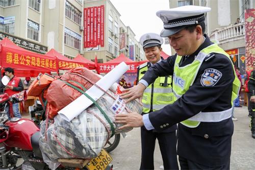 “今年, 县委县政府组织相关职能部门联手桂银等多家爱心企业,在爱心服务站免费提供茶姜糖水、肉骨粥、爱心面包、爱心米粽、爱心米饼、取暖、免费维修等各类贴心服务,还别具匠心准备了“藤县交警祝你一路平安” 反光膜2000份, 免费赠给需夜行的摩托车大军, 贴在他们的车尾箱戓行李包上,增强夜行车辆的反光, 多了一份关爱, 更多了一份保障,助他们平安归家”。 藤县公安局交警大队长朱名杰信心满怀地告诉笔者。