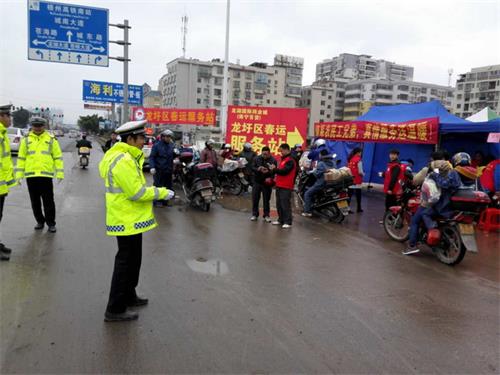 随着春运返乡潮的逐步升温,为有效预防和减少道路交通事故,确保春运期间道路畅通有序,群众出行安全,龙圩交警大队自1月13日龙圩春运服务站启动以来,依托春运服务站切实加强道路交通安全管理。