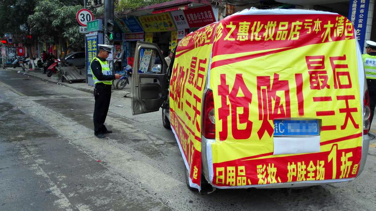 随着城市经济蓬勃发展,各行各业竞争力不断升温,每逢节假日商家利用车体广告宣传自身产品的形势在我市市区日益增加,对城市交通安全秩序造成了影响,为切实保障辖区交通秩序安全畅通,龙圩交警大队大力开展城区道路交通秩序整治,加强对辖区违法停车、违禁入城、车载广告的查处。