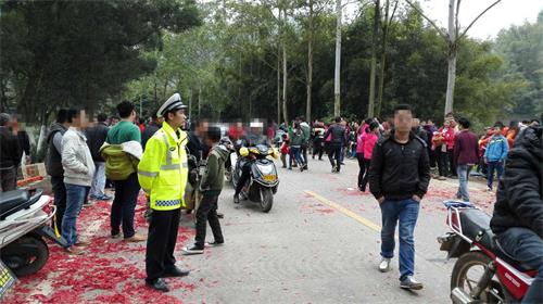 2月6日农历正月初十,龙圩辖区新地镇举办一年一度的传统抢花炮活动,为保证好活动期间周边道路交通秩序,龙圩交警大队新地中队积极组织警力开展交通指挥疏导,为广大参加活动的群众营造良好的道路交通环境。