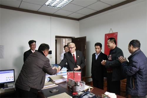 “大家新年好!我们代表院党组给大家拜年啦!”岑溪法院党组的祝福传到了法院每间办公室。办公室里祝福声声,欢笑阵阵。每到一个部门,吴院长都回顾了过去一年的工作业绩,在肯定成绩的同时,更对新一年的工作提出新的要求。在综合部门,吴院长肯定了司法行政人员在法院运行中的重要价值,勉励他们继续为法院提供一流的后勤保障;在机关审判业务部门,吴院长重点询问了经过调岗后的干警是否适应新的工作岗位,希望干警们调整好心态,以积极的态度投入到司法改革的实践中去;在执行局,党组成员与干警们进行座谈,吴院长强调了执行工作对司法公信力的影响,传达了梧州市法院用两年时间基本解决执行难的决心,要求执行局充分利用团队协作的优势全力破解执行难;在派出法庭,吴院长详细询问了法庭干警在工作、生活中所遇到的问题,希望法庭干警克服困难,经常深入到农村群众中进行普法教育,把司法为民落到实处。