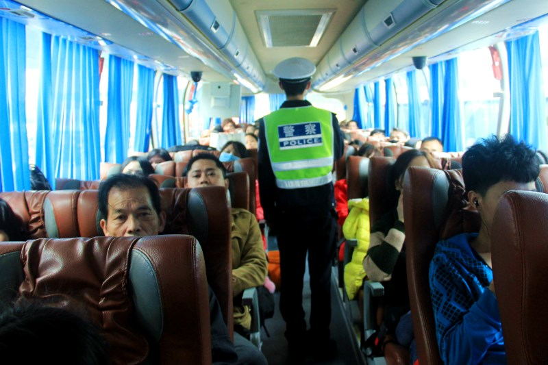距离春运结束还有13天,国道与高速公路繁忙不已,客运仍处于高峰期,每日有几百趟客运车辆满载着务工人员赴粤,岑溪交警通过岗点执勤与机动巡逻相结合,加强对客运车辆的安全检查。