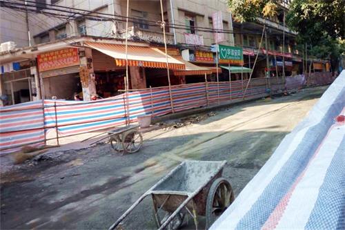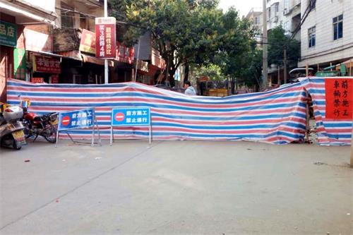 目前该路段已经开始施工,两边路口已经竖起了告示牌,需要经过这路段的车辆请绕道行驶。
