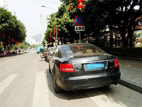 黑色小汽车违法停在斑马线上