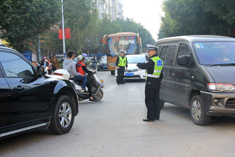 岑溪交管大队把警力最大限度地投入到路面管理上,市公安局副政委、交管大队大队长盘涌辉靠前指挥,城区中队和车管所的民警、协警全力对市区内堵车节点进行交通管控,通过限制左转和分流等方式,及时排堵疏畅;归义中队、糯垌中队以及昙容中队则分派警力重点扼守国道207线、324线,强化国道巡逻管控,设流动岗引导沿线车辆有序通行。