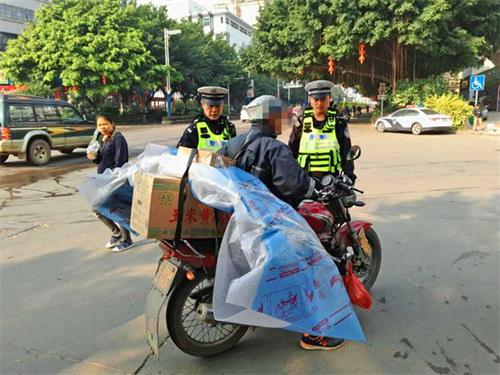 除了不按车道行驶,在15日早上的检查中执勤民警还对摩托车超限超载、非法加装遮阳伞等交通违法行为进行整治。