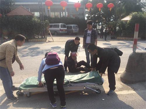 高速交警与救护人员、群众一起合力抱起受伤市民上担架