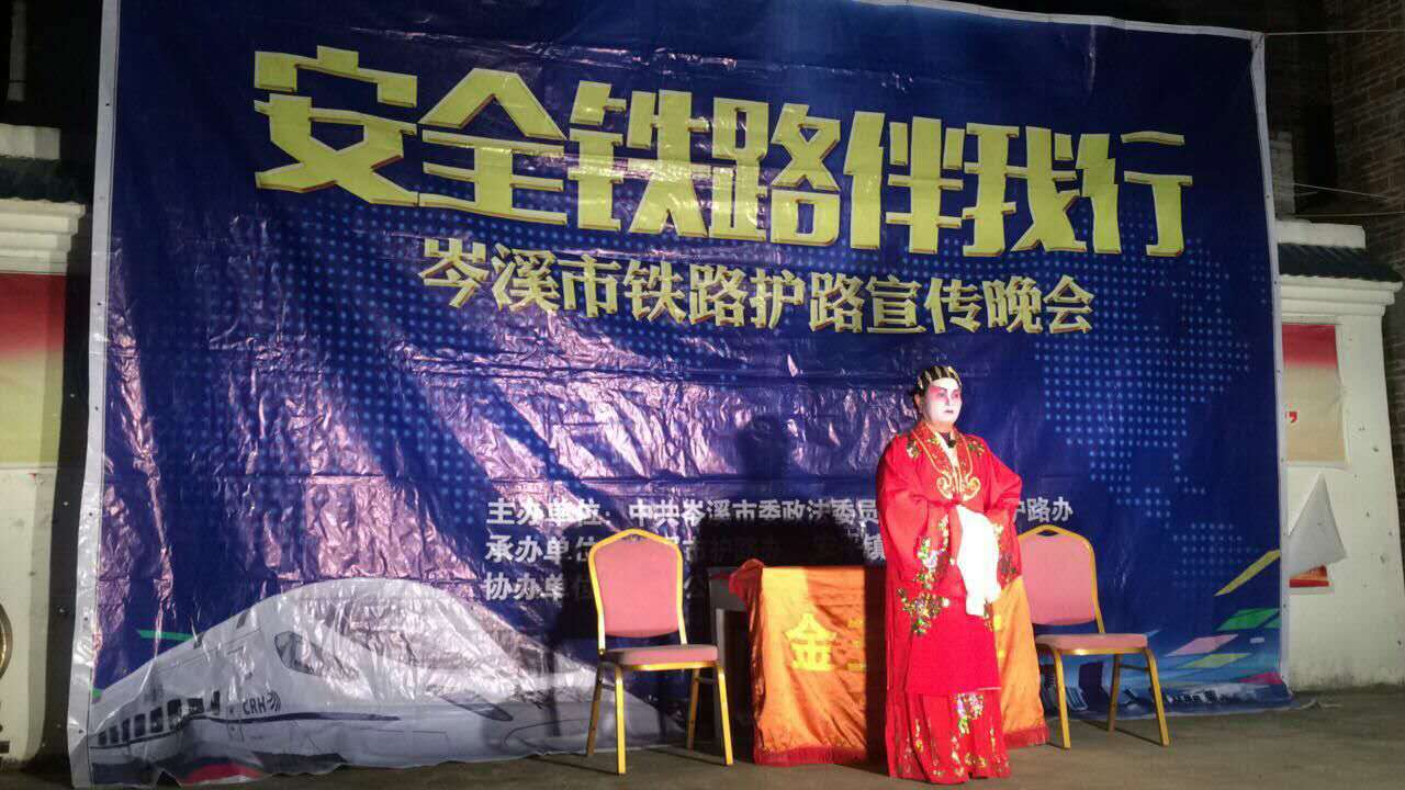 岑溪“牛娘剧”是岑溪老百姓最喜爱的传统地方戏,具有悠久的历史。岑溪市护路办与岑溪站派出所、岑溪站密切协作,聘请当地专业的“牛娘剧”演出团队,把知路爱路护路知识和铁路法制知识编排到“牛娘剧”文艺节目中,用古老的曲调传唱平安和谐铁路曲。去年12月下旬以来,岑溪市护路办聘请“牛娘剧”文艺队先后深入到铁路沿线7个镇举办了14场“安全铁路伴我行”护路宣传文艺演出,把知路爱路护路知识送进千家万户。