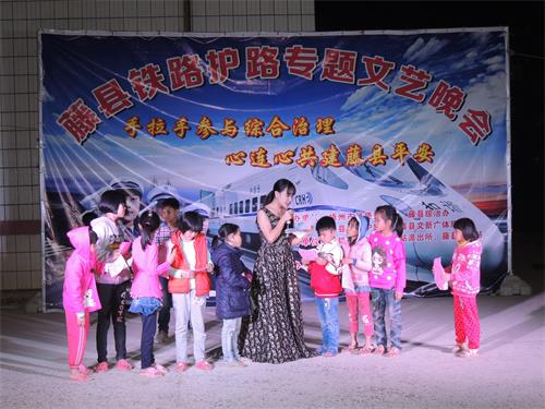 图为在文艺演出宣传中穿插进行知路爱路护路和铁路安全以及法律法规知识有奖问答活动
