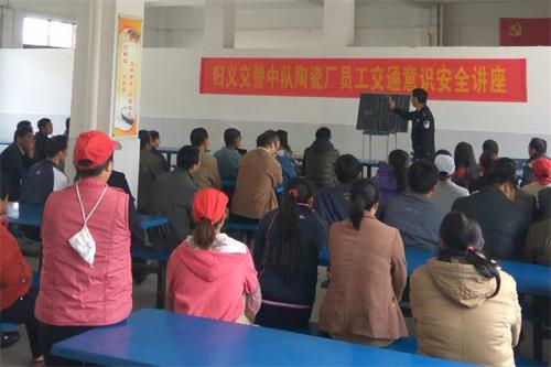 3月3日,岑溪市公安局交通管理大队的宣传民警们来到岑溪市大业镇的一家陶瓷厂,为厂里的50多名工人展开交通安全宣传讲座,这是进入3月份以来岑溪交警走进的第三家工厂。