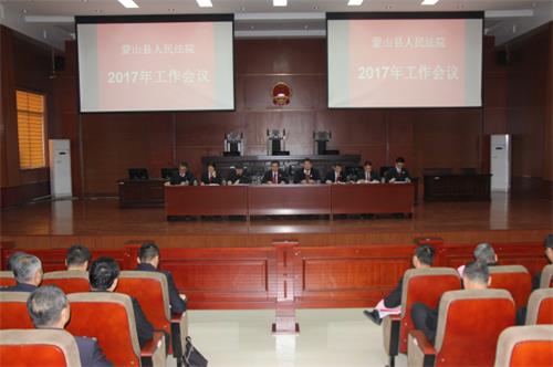 2017年3月3日下午,蒙山县人民法院在第一审判庭召开2017年工作会议,贯彻落实中央、全区、全市、全县政法工作会议,以及全国高级法院院长会议、全区法院院长会议、全市法院工作会议精神,总结2016年各项工作,研究部署2017年工作。蒙山法院副院长潘建华主持会议,党组书记、院长张献民作2016年工作总结并部署2017年各项工作,全体干警参加会议。
