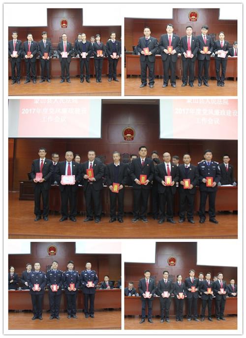 会议还对2016年工作成绩突出的集体和个人进行了隆重表彰,还特别对2016年以来工作积极、成绩突出的优秀人民陪审员进行了表彰。随后,党组副书记徐建平代表党组对2016年党风廉政建设和反腐败工作作了总结,并对2017年的反腐倡廉工作进行了部署。党组书记、院长张献民与其他党组成员,以及党组成员和所分管各部门负责人分别签订了党风廉政建设责任状。