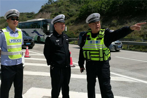 4月2日,正值清明高速免费通行首日,梧州市公安局交警支队副支队长何家森一行来到高速三四合署大队检查指导工作。