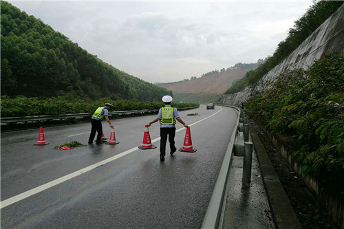 4月18日起,受高空槽、切变线及冷空气共同影响,我市有一次明显的降雨天气过程,受其影响,大队辖区高速公路均出现了明显的降雨天气,阴雨连绵的天气大大地影响到了高速行车安全,梧州市公安局交警支队高速一、二、五合署大队高度重视,积极迅速采取应对措施,启动恶劣天气应急预案,结合现阶段正在开展的预防重特大道路交通事故专项整治行动,认真部署落实,全面落实做好强降雨天气期间道路交通管控工作。