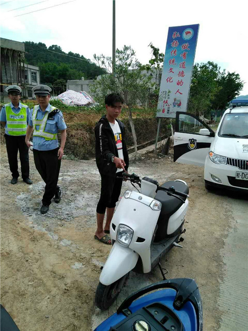 5月2日15时30分许,广西岑溪市公安局交通管理大队南渡中队巡逻民警正沿着国道207线往岑溪方向巡逻时,发现两辆未悬挂机动车号牌的摩托车沿对向车道疾驰而来,形迹可疑。巡逻民警示意其停车接受检查。“你好,请出示驾驶证!”“阿sir,我的是助力车,不用上牌,也不用驾照呀”驾驶人雷某神情闪烁地喊道。
