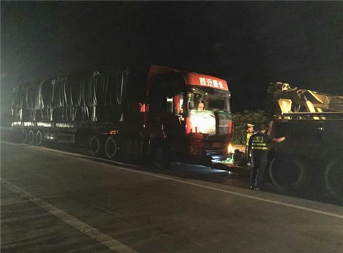 当民警由马路至昙容方向巡逻至G80广昆高速280公里处时,发现一辆重型半挂牵引打着双闪灯停在行车道上,后面没有任何警示标志,车的旁边有两人正在忙碌着什么,执勤民警意识到这是车辆出现故障了。民警立即开启双闪灯警示后方来车,并安排人员在车辆后方摆放反光锥筒,虽然时值凌晨车流不大,但正是疲劳驾驶频发的时段,民警为安全起见,还安排了一名人员在后方安全位置使用强光手电指挥来车。做好一系列安保措施后,民警上前询问驾驶员,得知为车辆发动机故障无法启动正在发愁时,民警立即联系清障车,及时给驾驶员提供了帮助,消除了安全隐患,并对驾驶员在高速公路车辆发生故障未按规定摆放警示标志的行为进行了处罚教育。